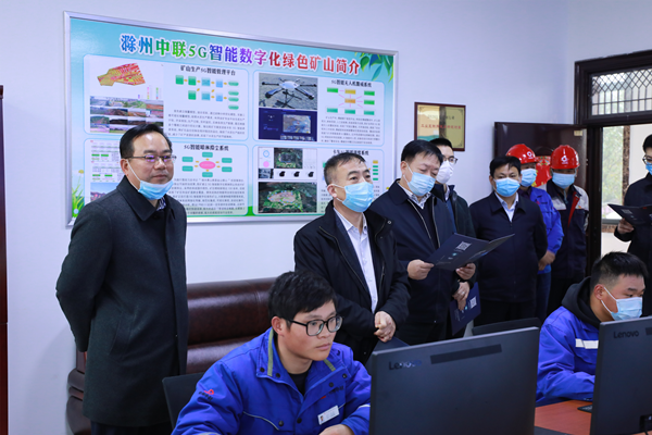 3月17日下午,中國建材股份有限公司黨委委員、副總裁、中材礦山建設(shè)有限公司董事長張金棟一行蒞臨滁州中聯(lián)黃槽坊礦山視察指導(dǎo)工作,滁州中聯(lián)水泥有限公司黨委書記、總經(jīng)理劉曉俊率黨委成員、兗州中材建設(shè)有限公司副總經(jīng)理顏景祥及相關(guān)領(lǐng)導(dǎo)全程陪同。  張總一行領(lǐng)導(dǎo)深入礦山現(xiàn)場,聽取了關(guān)于綠色礦山建設(shè)的相關(guān)匯報(bào),實(shí)地檢查了礦山開采作業(yè)、車輛運(yùn)輸、安全設(shè)備運(yùn)行等相關(guān)情況。劉總向張總匯報(bào)了礦山開采近期規(guī)劃,并展望礦山未來發(fā)展。  隨后,張總一行參觀了5G智能控制室,聽取了關(guān)于5G智能數(shù)字化綠色礦山建設(shè)情況的相關(guān)匯報(bào)。  本次張總一行領(lǐng)導(dǎo)蒞臨黃槽坊礦山視察指導(dǎo),既肯定了現(xiàn)階段礦山建設(shè)取得的成績,又指明了礦山下階段的發(fā)展方向。