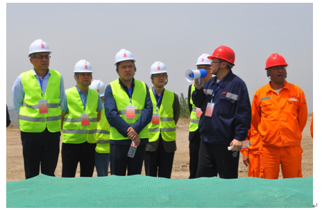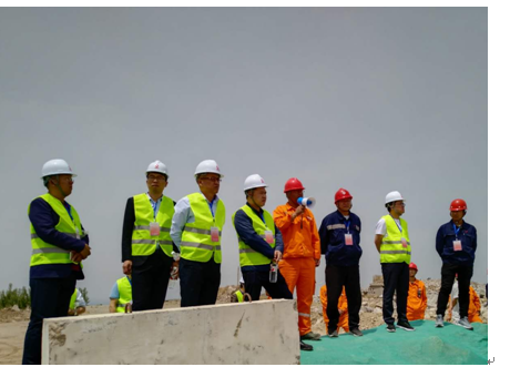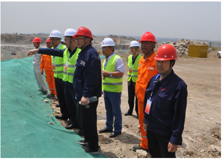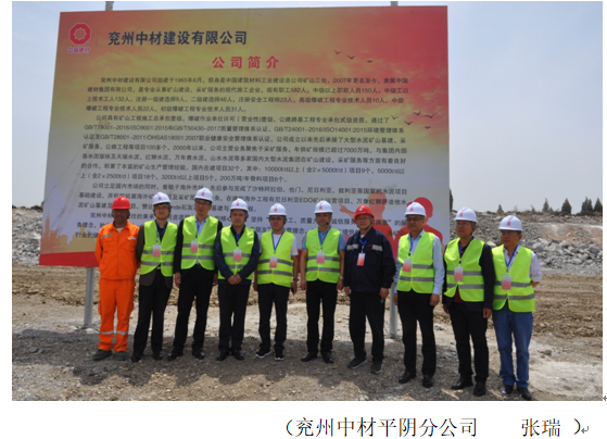 5月6日,吉林天池鉬業(yè)有限公司領(lǐng)導(dǎo)在平陰山水水泥有限公司,黨委書記侯福存、兗州中材建設(shè)有限公司總經(jīng)理柯升、副總經(jīng)理張?zhí)m青的陪同下,蒞臨兗州中材平陰分公司礦山施工現(xiàn)場參觀指導(dǎo)。