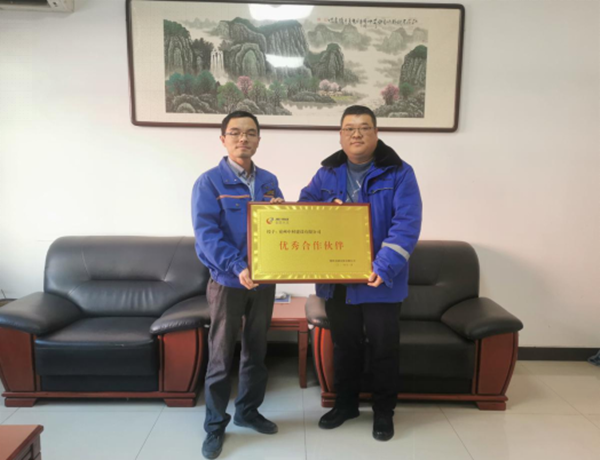 11月25日,為表彰兗州中材神頭分公司對朔州金圓水泥有限公司超額完成年度生產任務做出的積極貢獻,金圓水泥副總經理王魁向兗州中材建設有限公司神頭分公司頒發(fā)了“優(yōu)秀合作伙伴”的榮譽獎牌。