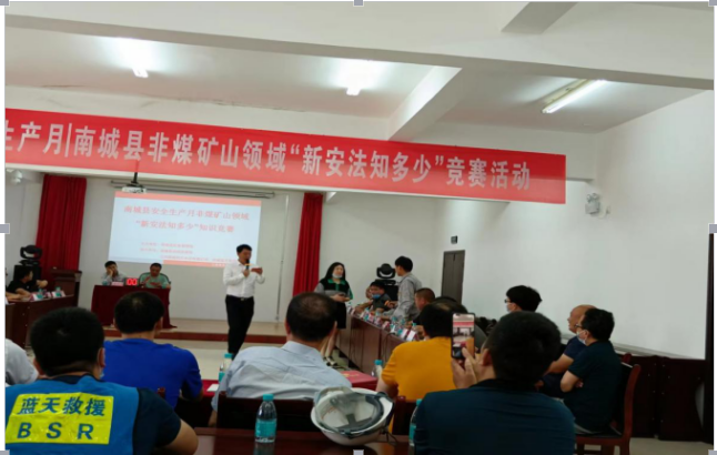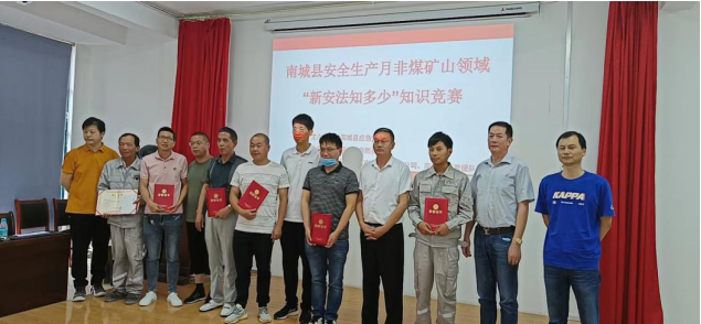 今年6月是全國第21個安全生產(chǎn)月,安全生產(chǎn)月的主題是“遵守安全生產(chǎn)法,當(dāng)好第一責(zé)任人”,今天也是全國安全宣傳日,南城縣安全生產(chǎn)委員會礦山安全專業(yè)委員會決定在江西南城南方水泥有限公司舉辦南城縣非煤礦山“新安法,知多少”知識競賽活動。 參賽隊伍:(1號隊)南城縣新泰石材廠、(2號隊)南城縣南景東風(fēng)礦業(yè)有限公司、(3號隊)南城縣富耀瓷土有限公司、(4號隊)南城縣青玉礦業(yè)有限公司、(5號隊)江西煜晟礦業(yè)有限公司、(6號隊)兗州中材建設(shè)有限公司南城分公司、(7號隊)江西昌和礦業(yè)有限公司。