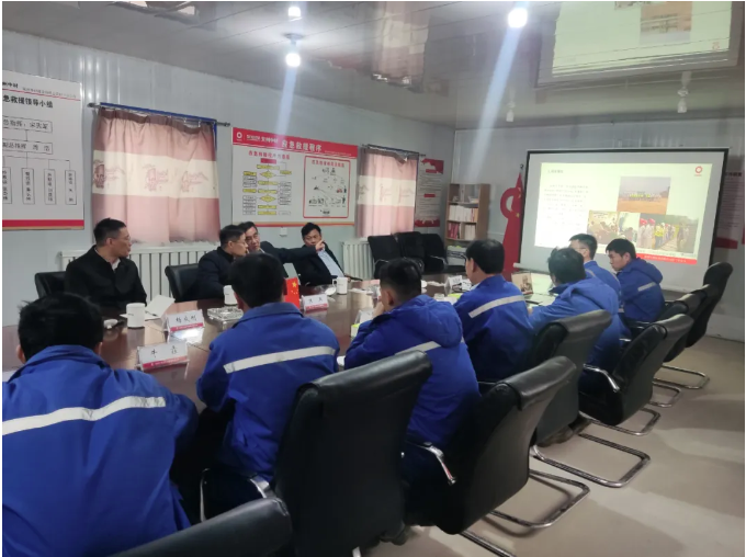 在項目部,朱兵一行與員工進行了親切座談,顏景祥匯報了舒蘭分公司項目建設、區域經營、行業發展、兩外轉型等情況。